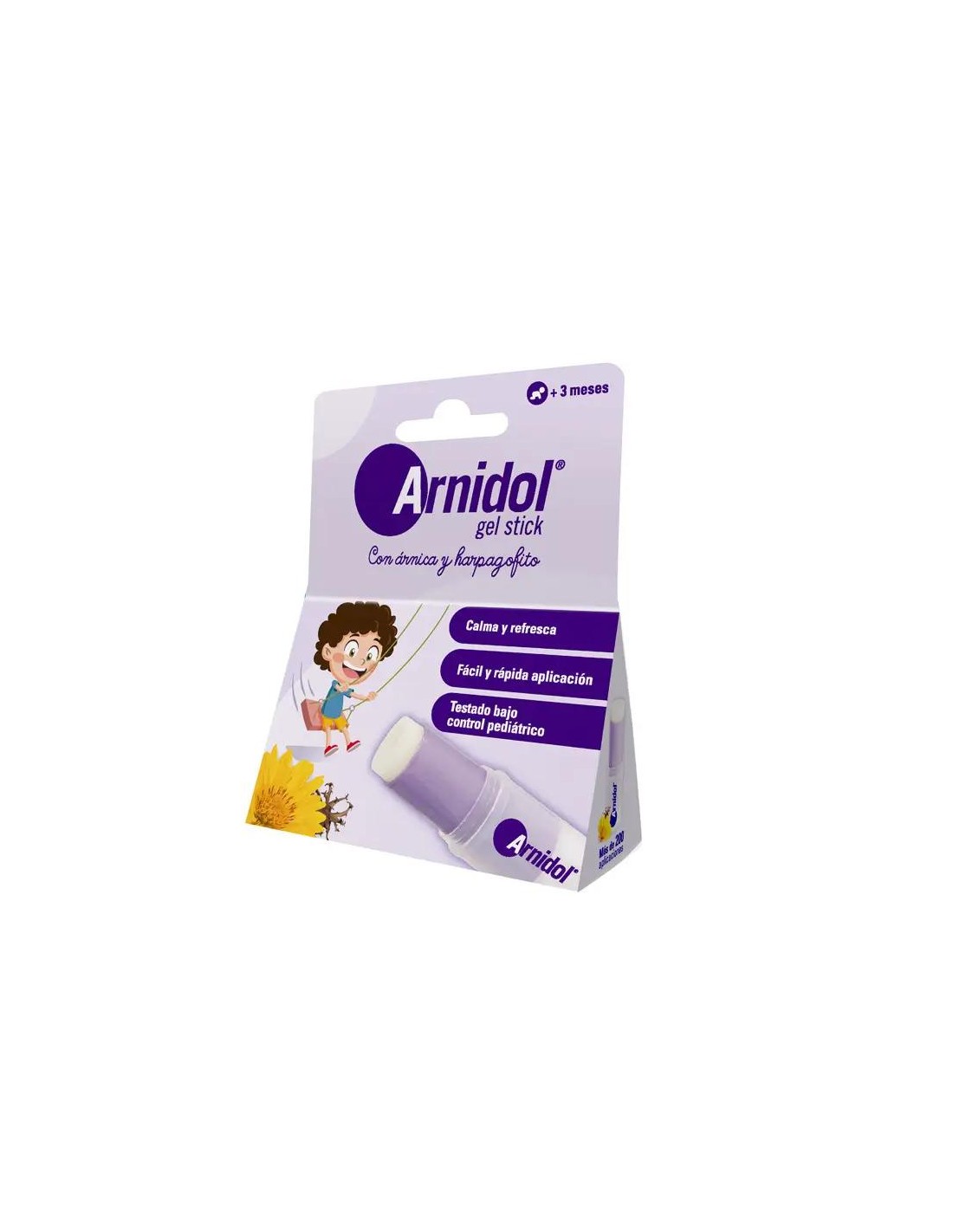 Arnidol GEL stickes una formulación natural a base de Árnica y Harpagofito que refresca y reconforta la piel aliviando los pequeños golpes de los niños. El Árnicasuaviza, hidrata y calma la piel. El Harpagofito aporta una agradable sensación de bienestar y confort. Si se trata de un golpe leve y SIN HERIDA, usa arnidol gel stick frotando suavemente la barra en la zona deseada con movimientos circulares. Aplicar las veces necesarias, pero no sobre heridas abiertas y evitar el contacto con los ojos o que tu hijo lo ingiera.