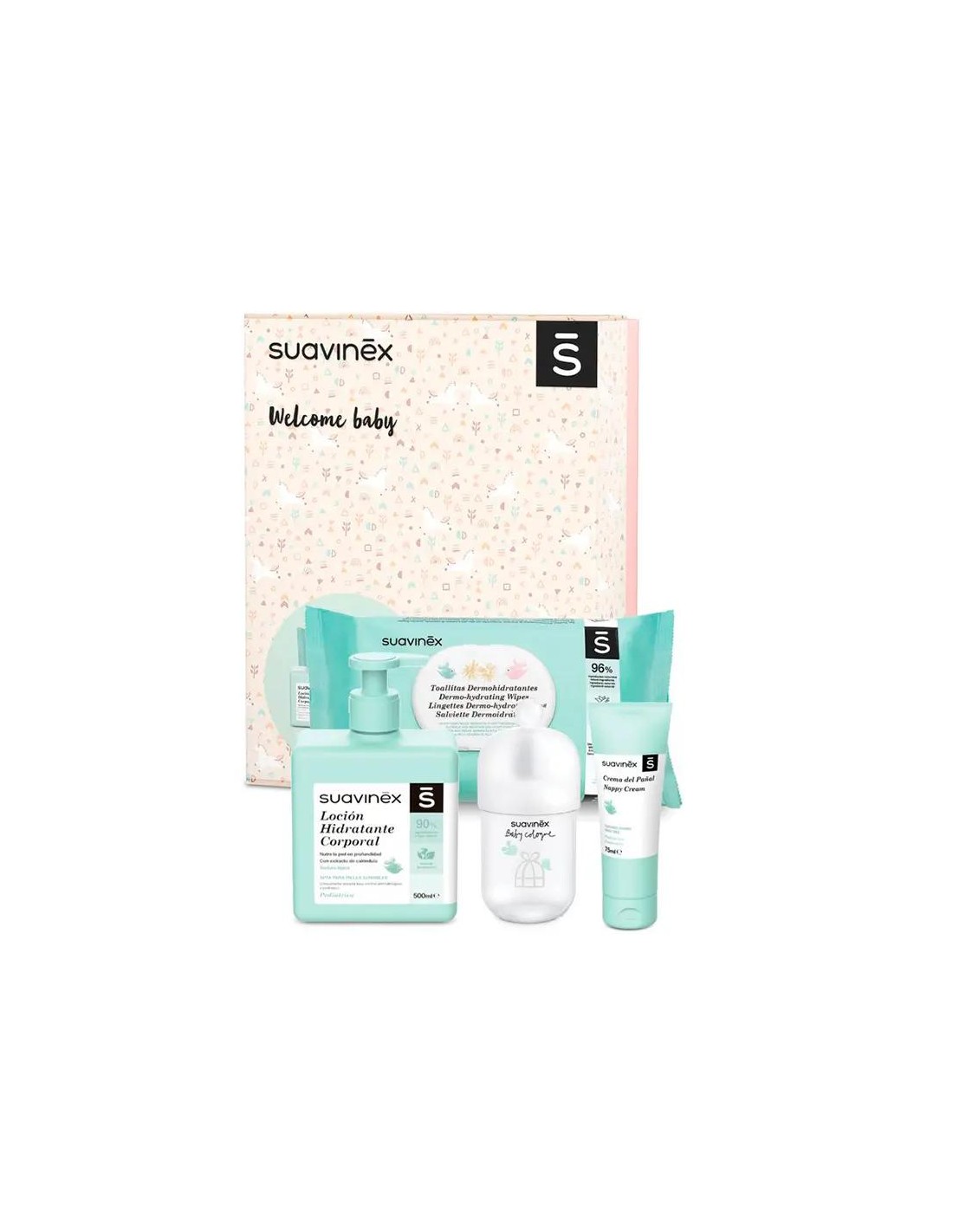 La crema del pañal Suavinex es perfecta para el cuidado diario de pieles normales y con tendencia moderada de la irritación. Con un 90% de ingredientes de origen natural. La loción hidratante corporal Suavinex tiene una textura ligera y de fácil absorción. Es una loción hidratante apta para pieles sensibles. Con un 90% de ingredientes de origen natural. La fragancia Baby Cologne Suavinex es una fragancia de bebé baja en alcohol con un aroma fresco y delicado. No mancha la ropita del bebé. Las toallitas dermohidratantes Suavinex son aptas para el contenedor de residuos orgánicos.