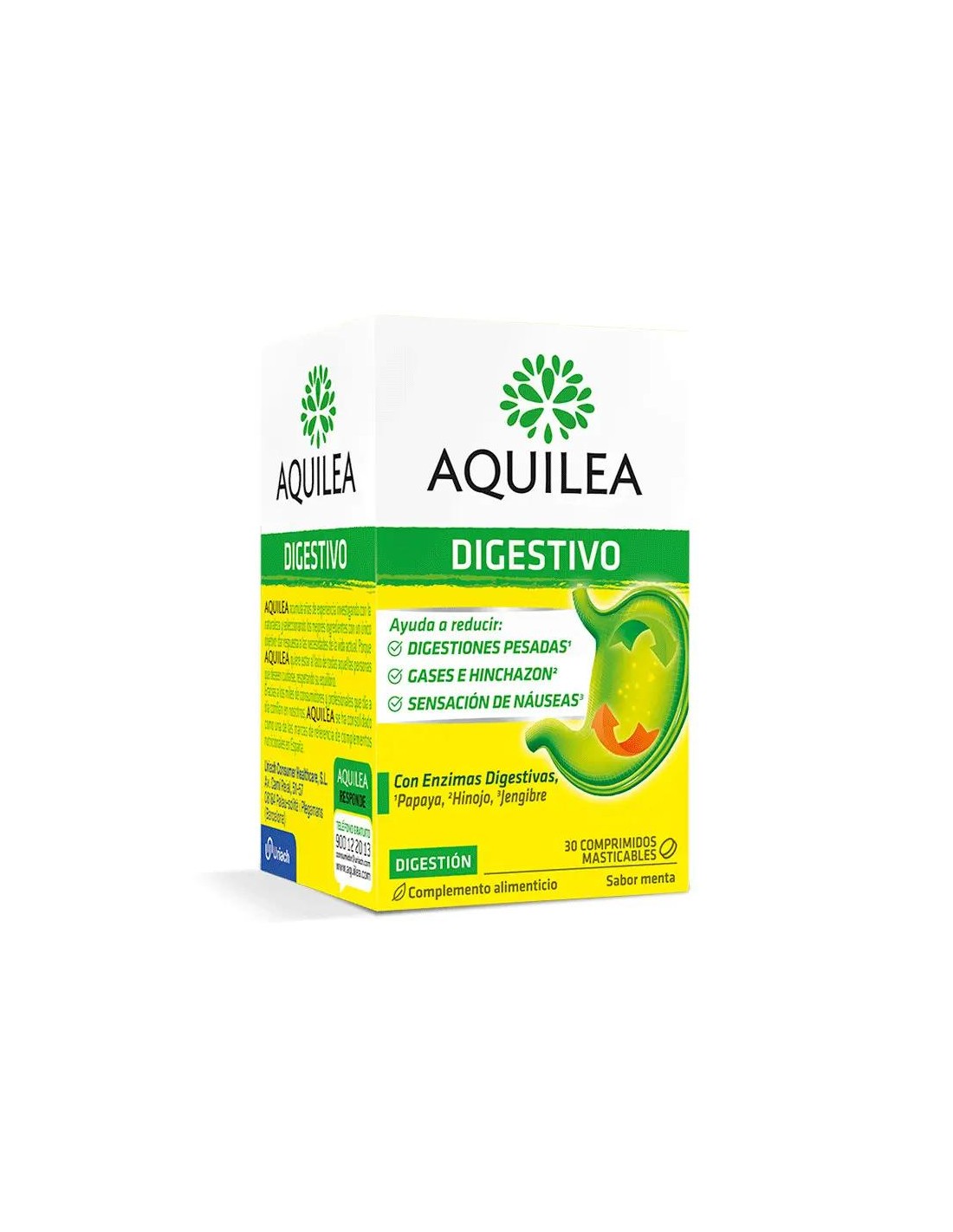Aquilea Digestivo ayuda en el alivio de los problemas digestivos causados por las digestiones pesadas o difíciles, evita los gases, el ardor o la diarrea. En su formulación se emplean activos que tienen propiedades que contribuyen al bienestar digestivo. Entre ellos está la papaya, que es una fruta rica en nutrientes. Este elemento aporta provitamina A, carotenoides, vitamina C, vitamina B, licopeno, minerales y fibra. Igualmente aporta la enzima papaína, que tradicionalmente se usa como apoyo a la digestión. Este es un activo beneficioso para los procesos estomacales, es digestivo, carminativo, diurético y para la diarrea crónica. La papaya tiene un gran efecto antioxidante, además es capaz de digerir las proteínas en péptidos y aminoácidos. La papaína apoya a los jugos pancreáticos para conseguir una mejor digestión de las proteínas. Este complemento también contiene proteasa, lactasa y amilasa, entre otras enzimas digestivas. Esta clase de enzimas conforman la base para una correcta digestión. Permiten la absorción de los alimentos que la persona ingiere. Si por alguna causa el páncreas disminuye la síntesis enzimática, este suplemento alimenticio las repone y equilibra. La falta de estas enzimas es la causante de hinchazón, los gases y la sensación de tener una digestión deteriorada.