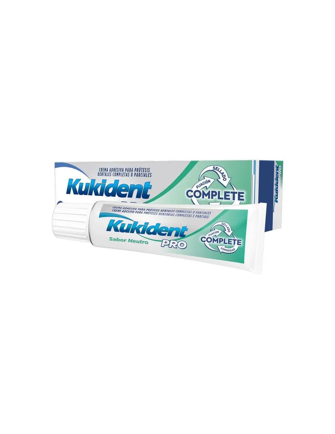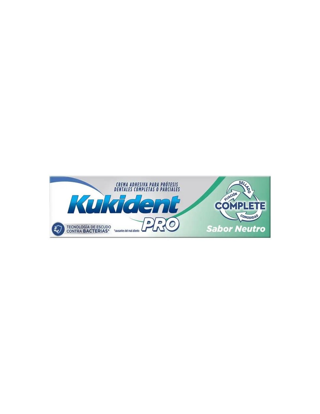 La Complete Neutro 47 g de Kukident, no contiene sabor artificial añadido, facilita la adhesión de los dientes postizos, con la mejor tecnología de sellado, y efecto amortiguador entre la encía y la prótesis que impide que se maltrate las encías. También evita que se filtren las partículas de comida, generando placa bacteriana y su proliferación, e impide que la prótesis se desprenda mientras conversa.