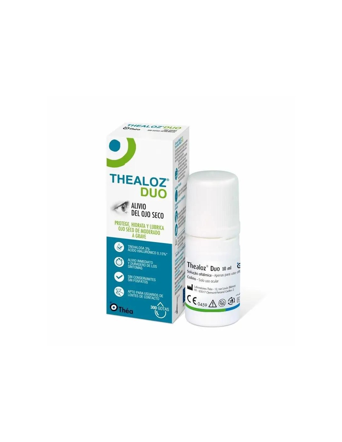 Thealoz Duo contiene: Trehalosa (3%), hialuronato de sodio (0,15%), cloruro de sodio, trometamol, ácido clorhídrico y agua para preparaciones inyectables.