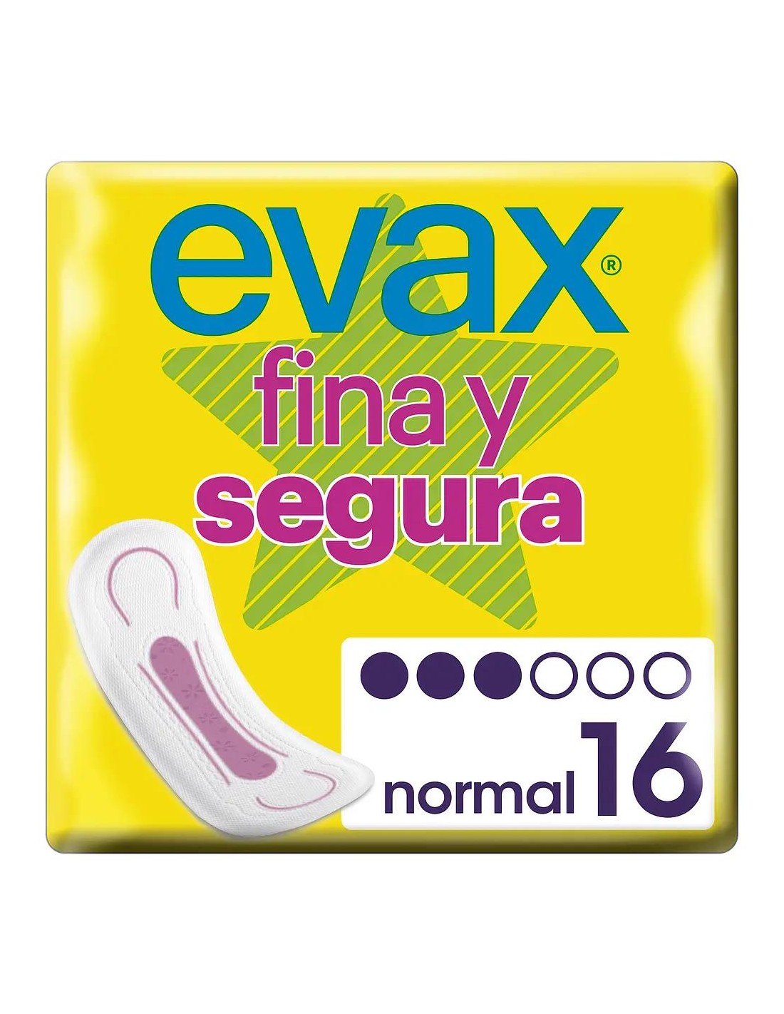 Evax Fina y Segura Normal Sin Alas son unas compresas delgadas y absorbentes que te mantienen cómoda y segura. Vienen en un paquete de 16 unidades.
