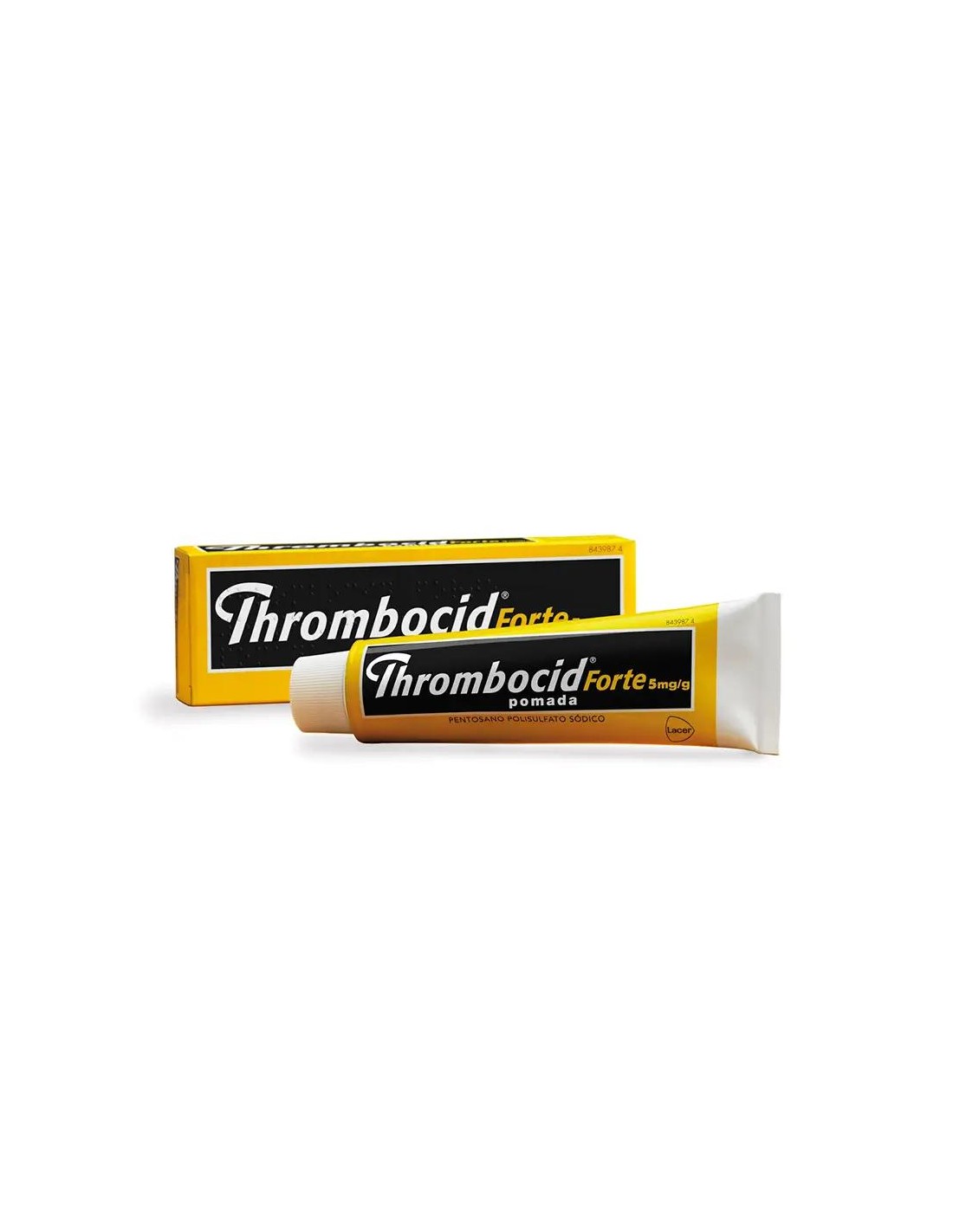 El principio activo de Thrombocid Forte es el pentosano polisulfato sódico. Concretamente, cada gramo de pomada contiene 5 mg de pentosano polisulfato sódico. El resto de excipientes son: Alcohol cetoestearílico , cetomacrogol 1000, glicerol (E422), propilenglicol, oleato de decilo , fenoxietanol , parahidroxibenzoato de metilo (E218), parahidroxibenzoato de etilo (E214) y agua.