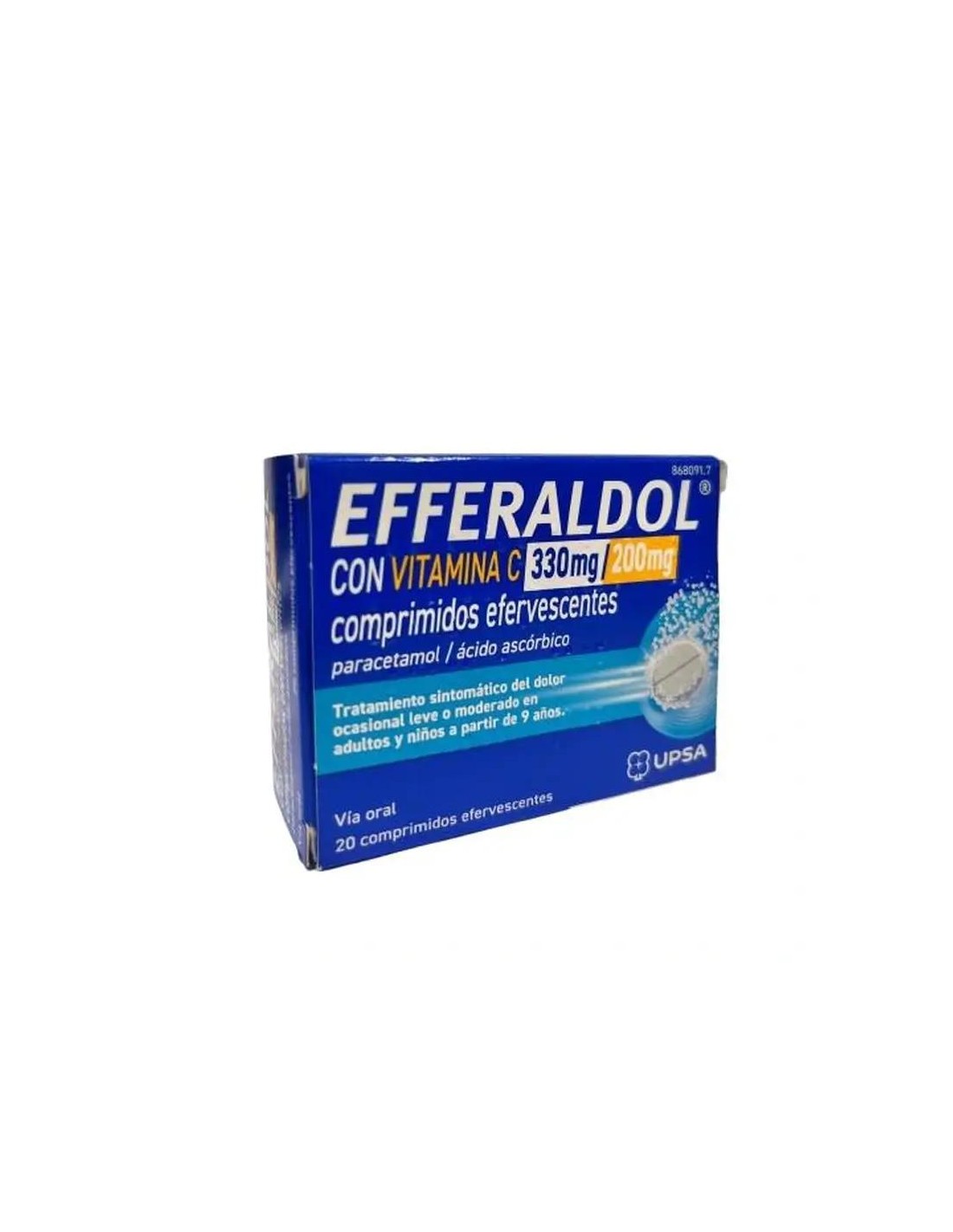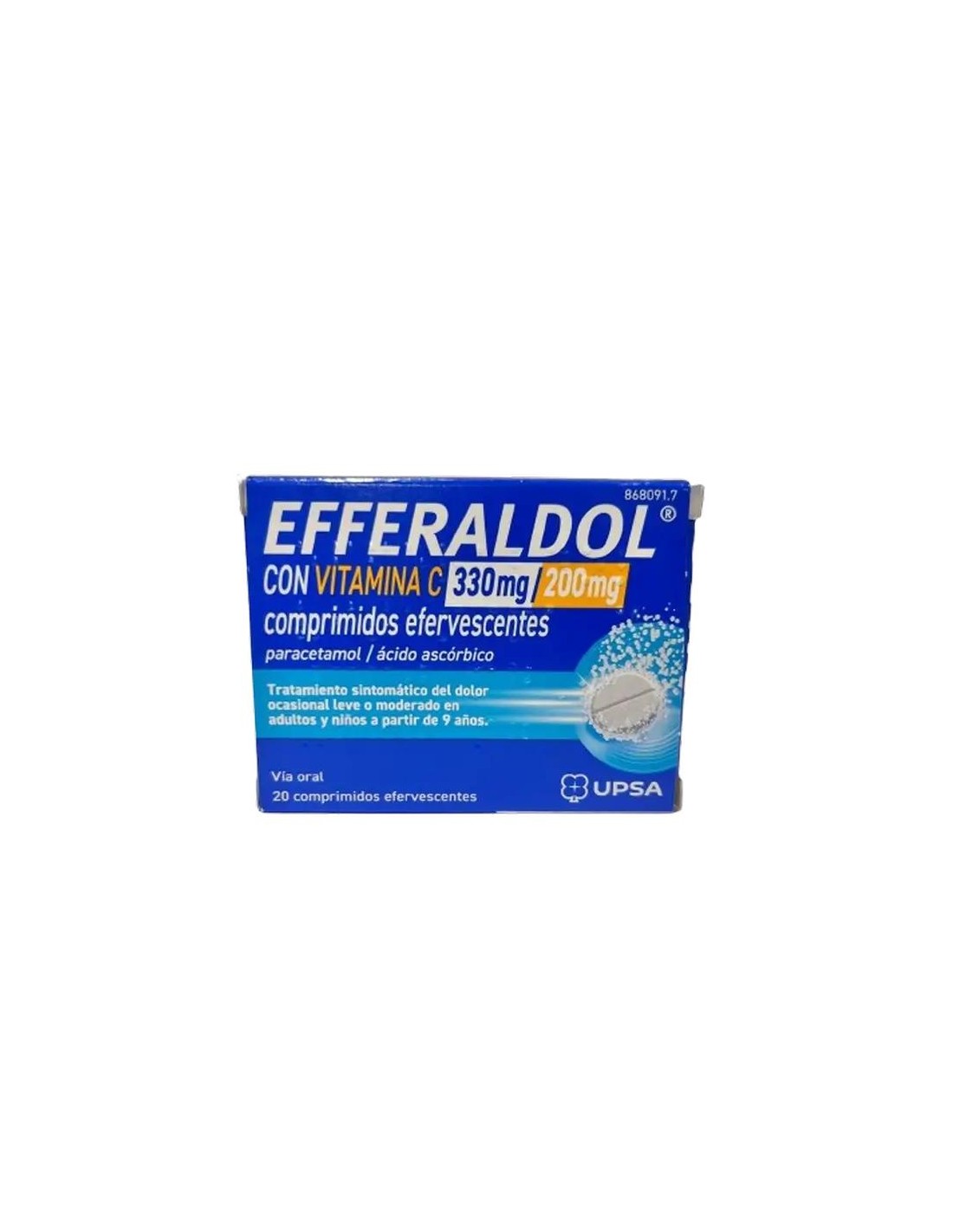 Cada comprimido de Efferaldol Vitamina C contiene los siguientes principios activos: 330 mg de paracetamol y 200 mg de Vitamina C. El resto de excipientes son: Ácido cítrico anhidro,Hidrogenocarbonato de sodio, Hidrogenocarbonato de potasio, Docusato de sodio, Polividona, Benzoato de sodio (E-211), Sorbitol (E-420).
