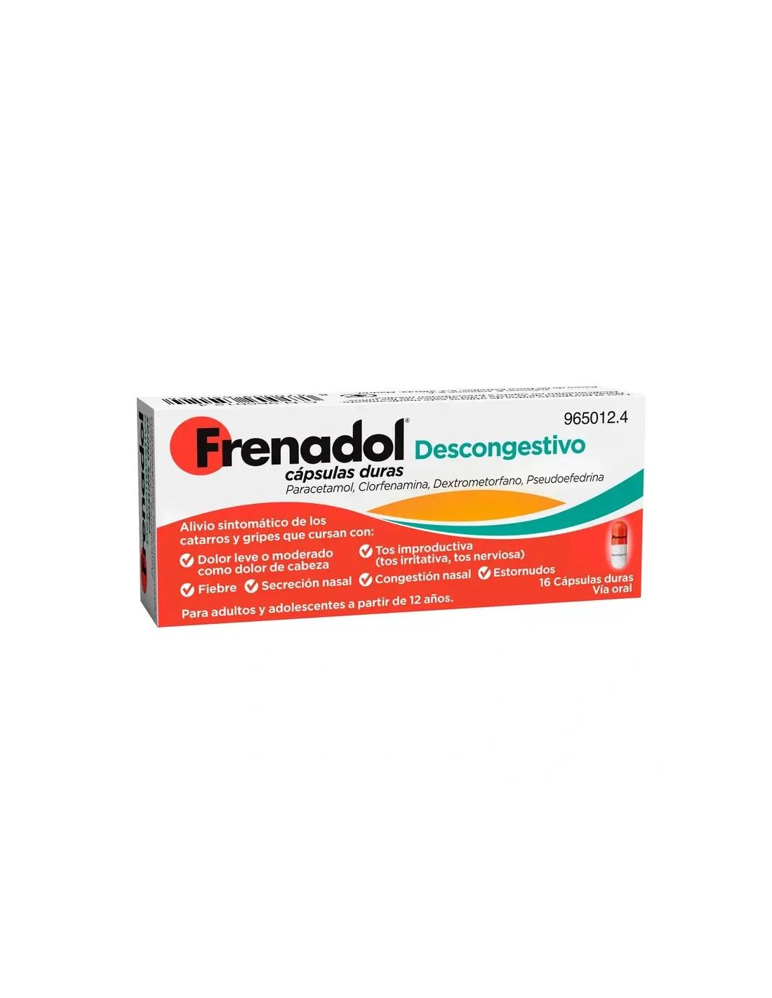 Los principios activos de Frenadol Descongestivo son: paracetamol 500 mg, clorfenamina 2 mg (como maleato), dextrometorfano 15 mg (como hidrobromuro) y pseudoefedrina, 30 mg (como hidrocloruro).