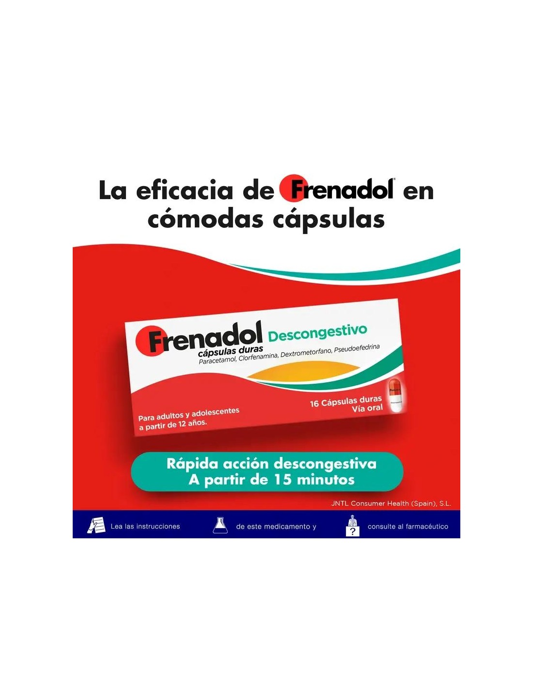 FRENADOL® Descongestivo Antigripal, Alivio Sintomático de Gripes y Catarros con Congestión Nasal, Vía Oral, 16 cápsulas